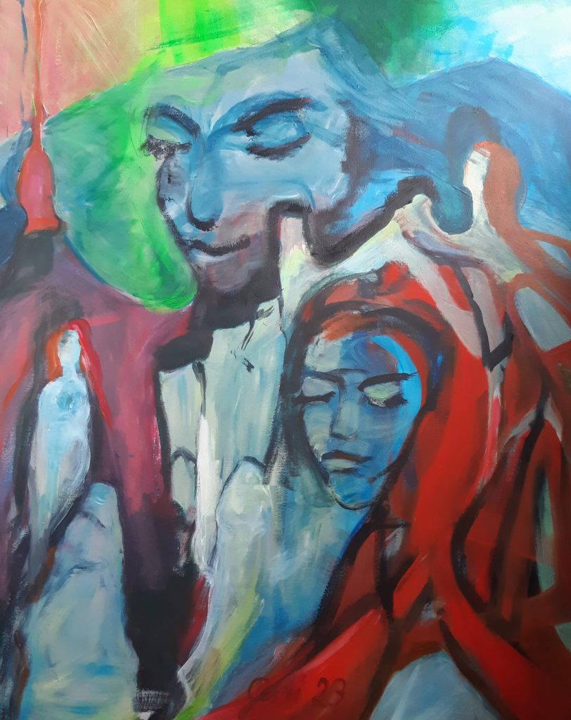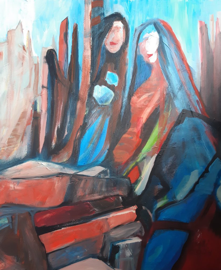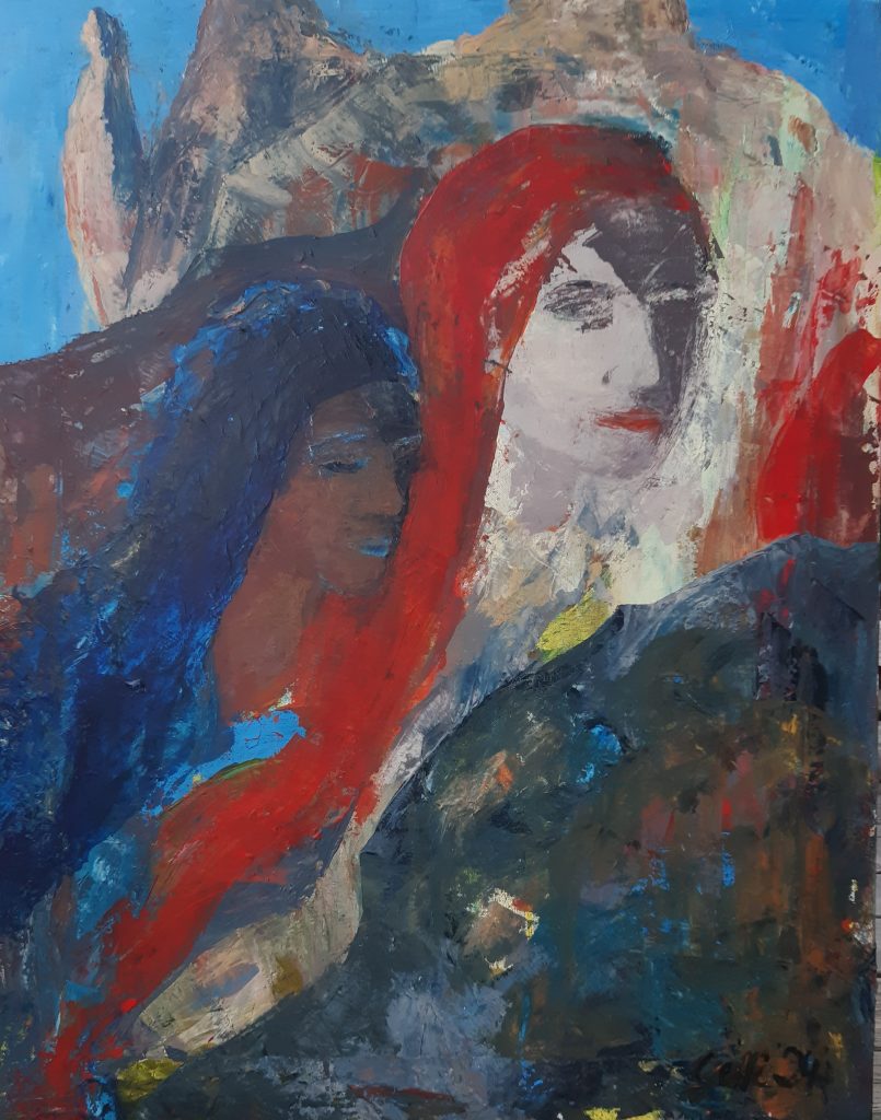 Wildfrauen und kleine Sennerin, 2024, Acryl auf Leinwand, Höhe: 90 cm, Breite: 70 cmKroatien 1, Pastell, 2024, Breite: 40 cm, Höhe: 30 cm
