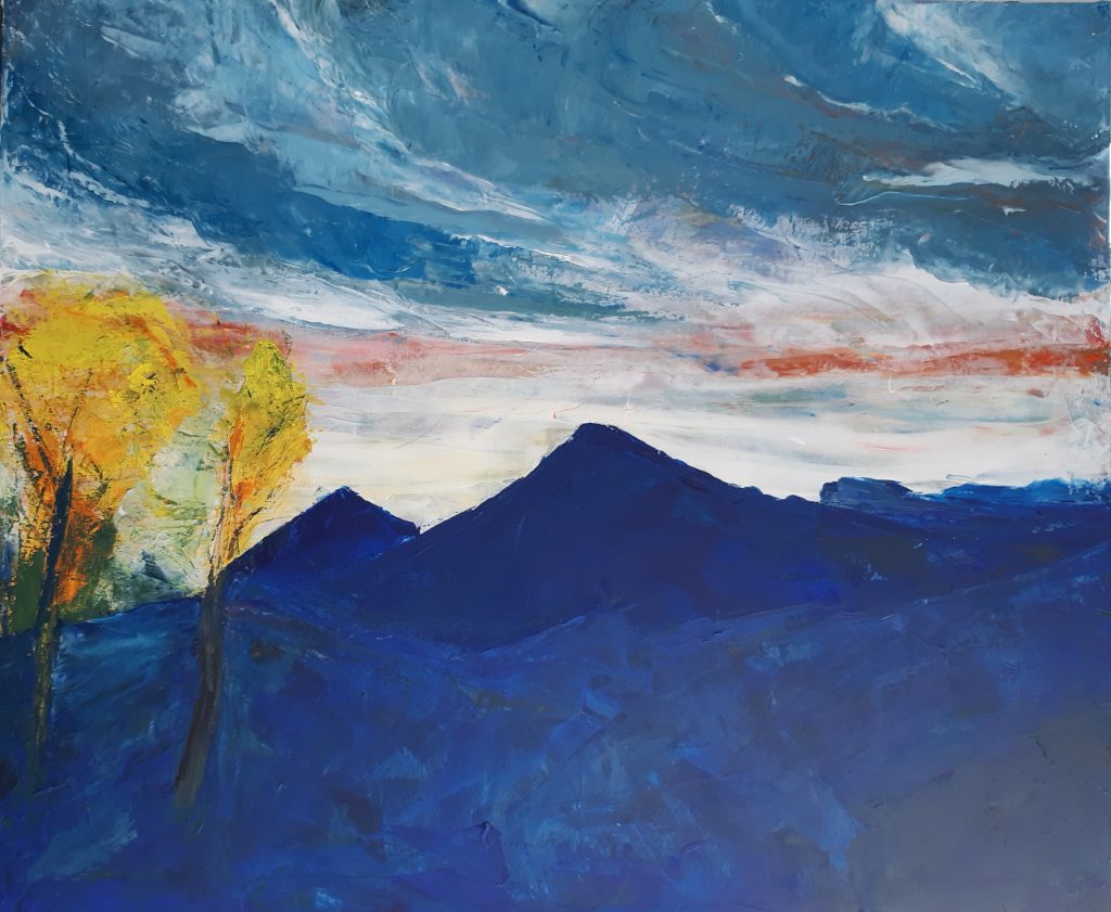 Hochplattenabend, Acryl auf Leinwand gespachtelt, 120 x 100 cm,, 2025