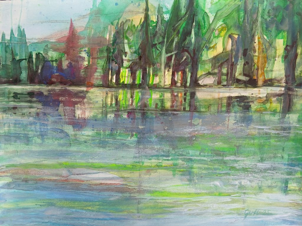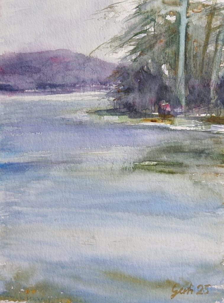 Tüttensee Spiegelung, Galaxieblau, Aquqrell 2025