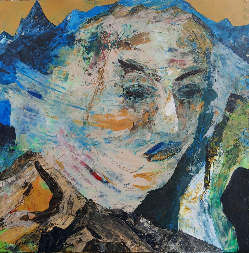Talblick, 2026, Acryl auf Leinwand, 100x 100 cm